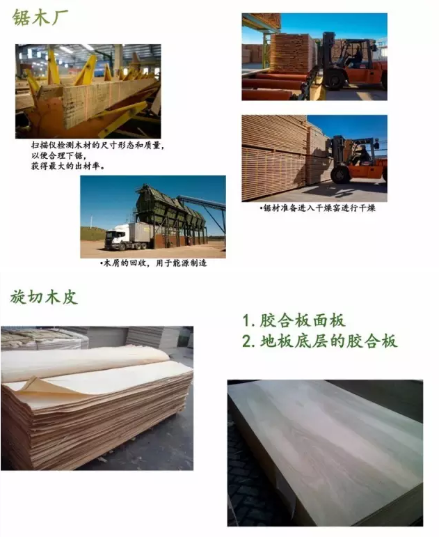 這樣一根原木樹(shù)干就被加工成各種產(chǎn)品,主要部分分割成不同規(guī)格的木材或切割木皮,次要的回收利用,例如做成指接板之類的產(chǎn)品。