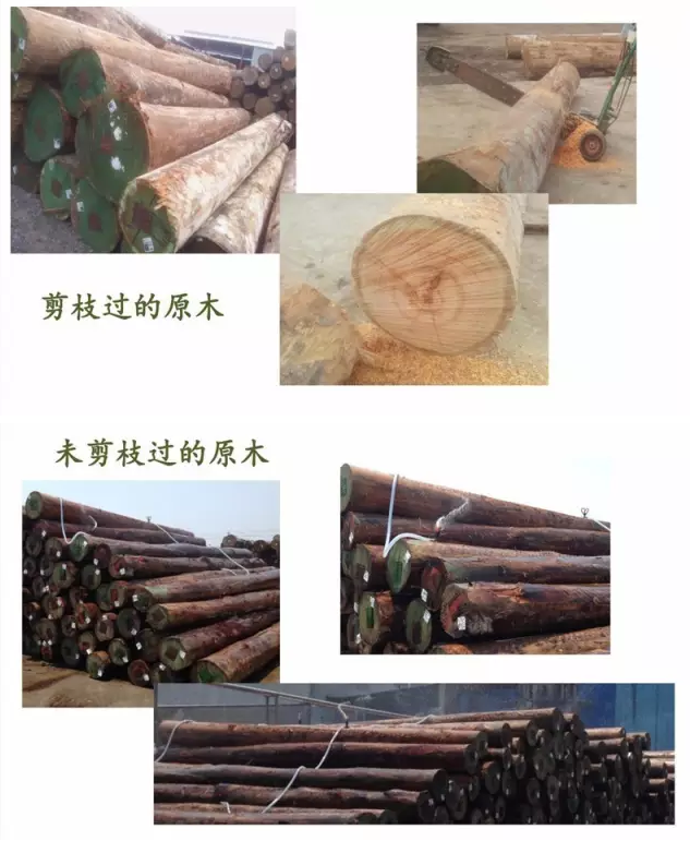 在這里放上經(jīng)過(guò)剪枝后的原木和沒(méi)剪枝自然生長(zhǎng)的原木的對(duì)比。