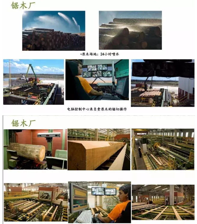原木樹(shù)干運(yùn)到鋸木廠,在原木場(chǎng)地會(huì)進(jìn)行24小時(shí)的噴水,保持木材的濕潤(rùn)。若在陽(yáng)光下暴曬會(huì)導(dǎo)致開(kāi)裂,那么好好的木材也就報(bào)廢了。然后利用電腦進(jìn)行篩選判斷之后進(jìn)行切割,避免木材的浪費(fèi)。